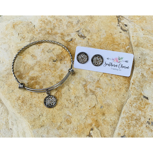 Tan Leopard Bracelet & Earring Set