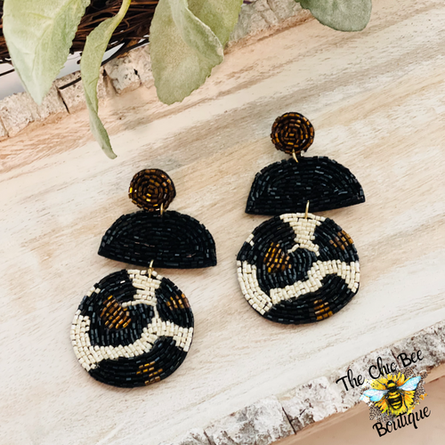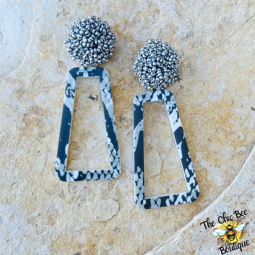 Snake Print with Silver Pom Earrings